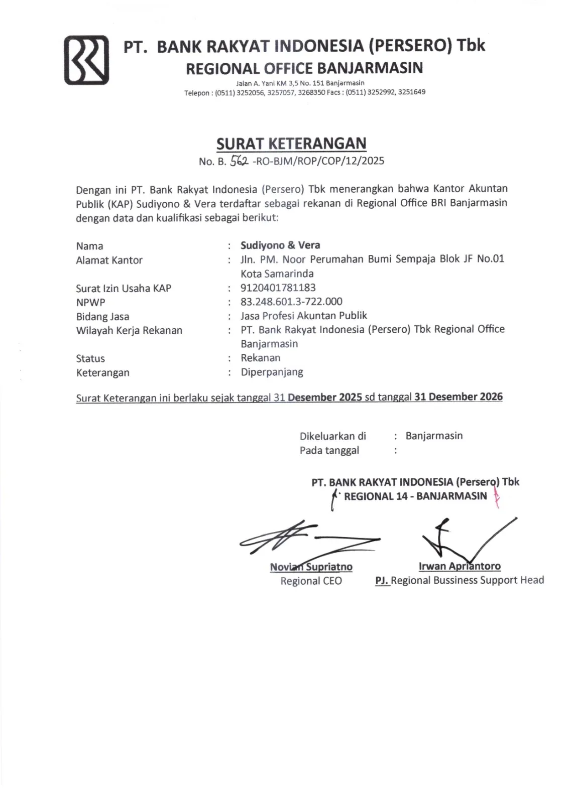 We strive to provide our best service in the form of audit and assurance services. Audit is one of the assurance services. Assurance services are Public Accountant services that aim to provide confidence for users on the results of evaluating or measuring financial and nonfinancial information based on a criteria.